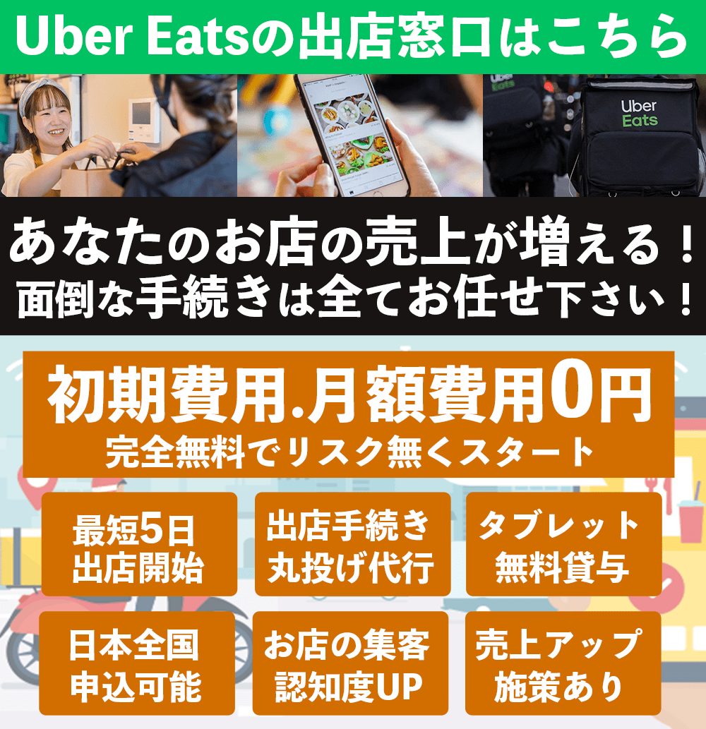 Uber Eats (ウーバーイーツ ) の出店掲載は無料で行えます。
