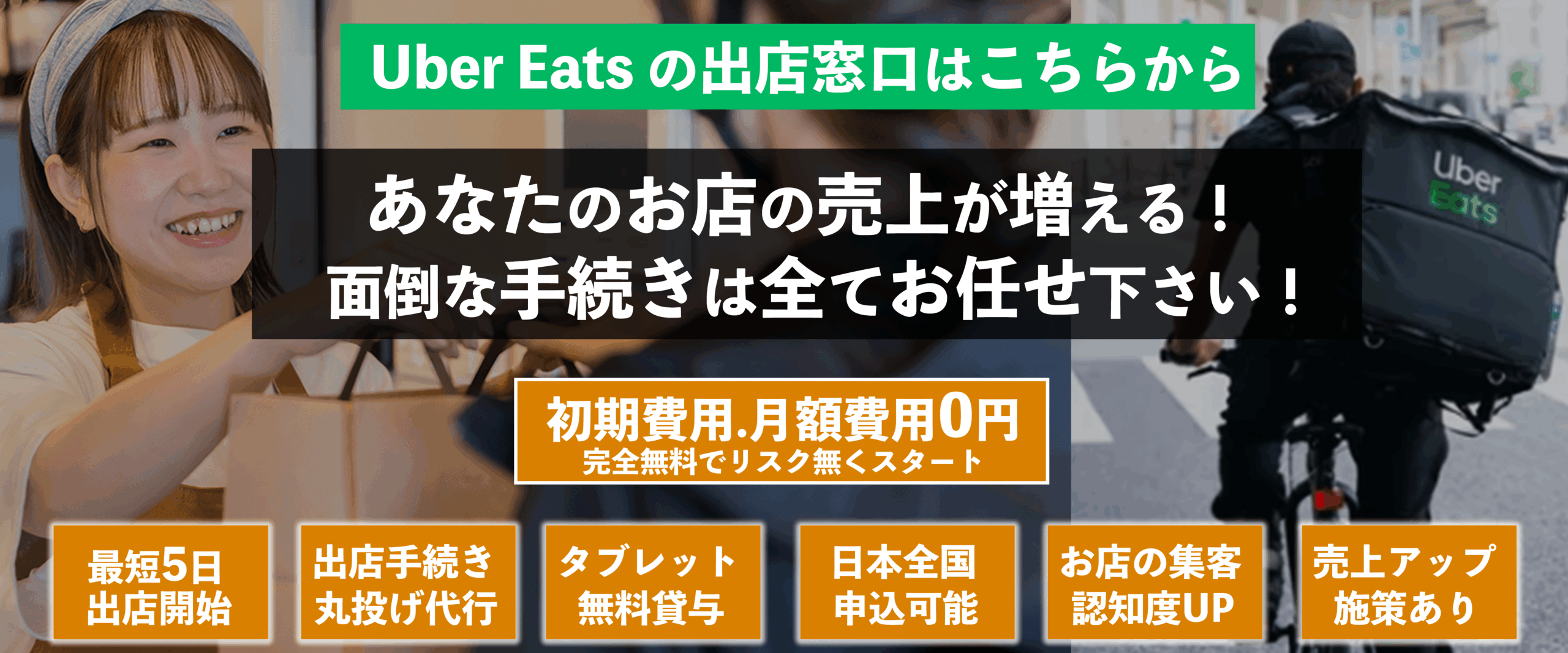 注文から配達までのデリバリー環境は全て Uber Eats (ウーバーイーツ ) に丸投げ出来ます。
